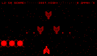 You control a space ship that's equipped with a cannon. Your mission is to destroy as many USA-serving ships as possible, and get out alive while getting as many points as possible.